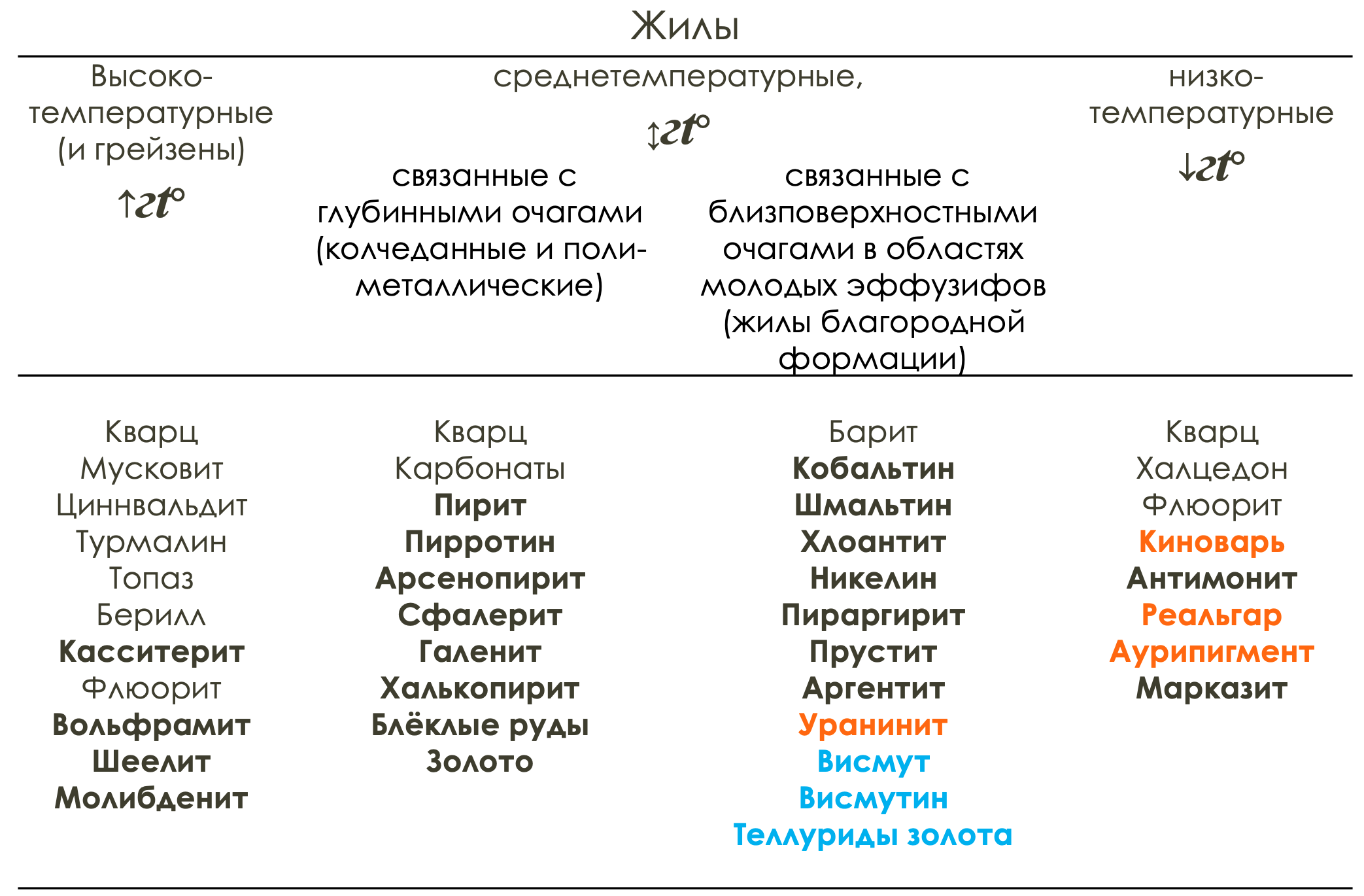 высокотемпературные (гипотермальные), возникшие при температурах 350-300 °С.