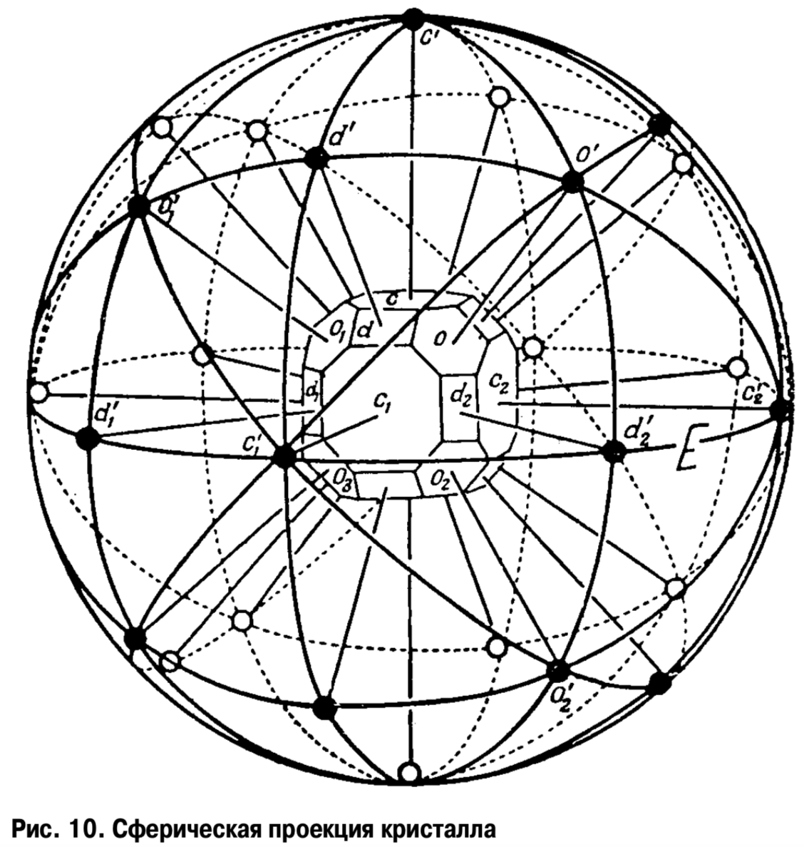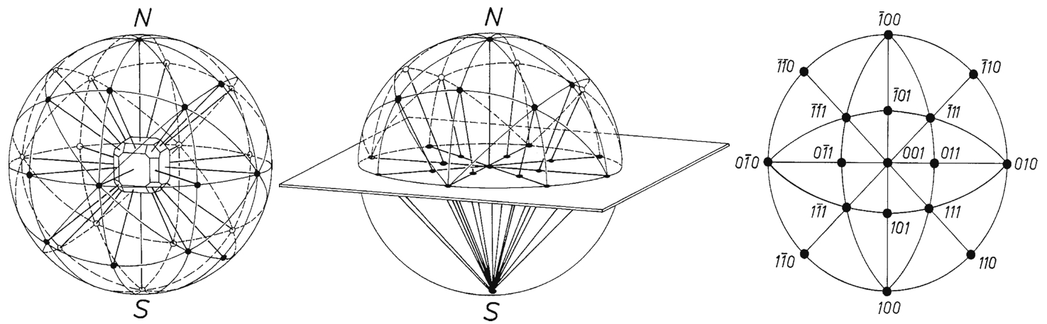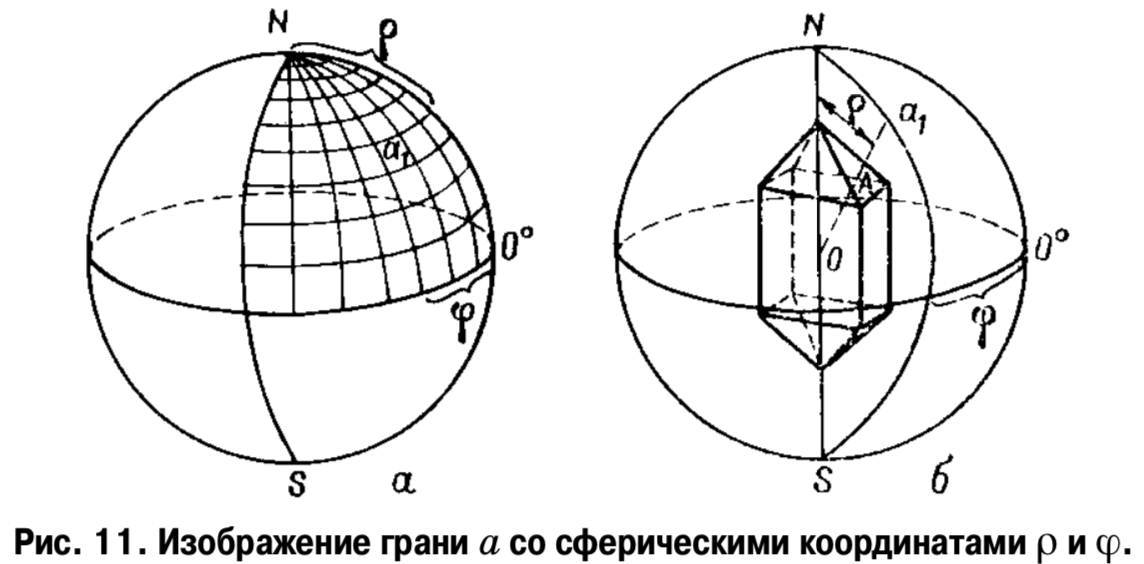 Рис. Построение стереографической проекции кристалла
