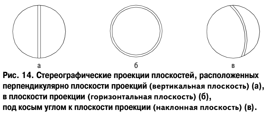 Стереографические проекция изображаются внутри круга (рис. 14).