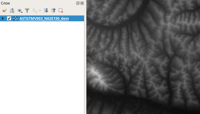 1. Добавьте ЦМР в проект Qgis или загрузите свой рабочий проект.